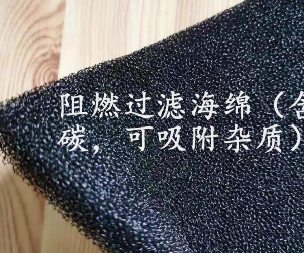 阻燃过滤海绵,里面含有碳的成分,具有更好的吸附杂质的作用。并且耐高温150°C。